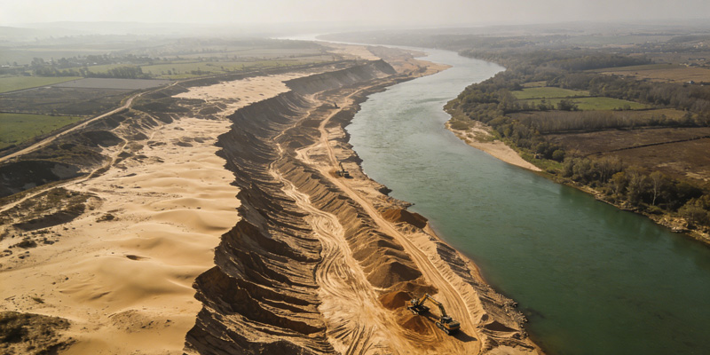 - Ecological Disaster: Excessive mining of natural river and lake sand directly causes severe environmental consequences. These include river channel alterations, coastline erosion, groundwater depletion, and the collapse of freshwater ecosystems. From the Mekong to the Niger River, illegal sand mining has become a global environmental and governance challenge.